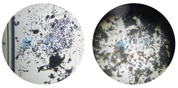 經全自動浸入式液氮冷凍研磨儀處理后的PVA和絲素蛋白在肉眼觀察下,呈現細膩的狀態。通過顯微鏡觀察,和以前用舊款儀器研磨的樣品對比發現,無論是在低倍還是高倍狀態下,通過凈信研磨儀處理的樣品的顆粒細膩程度都較優。舊款儀器處理的樣品在高倍鏡下觀察還存在一定程度的組織結構,而凈信研磨儀處理的樣品已成均勻顆粒狀。