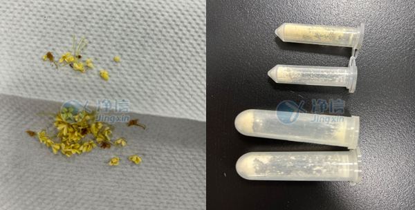 1、準(zhǔn)備2ml*24金屬適配器一套,2號研磨珠,先將桂花樣本分解成小塊。