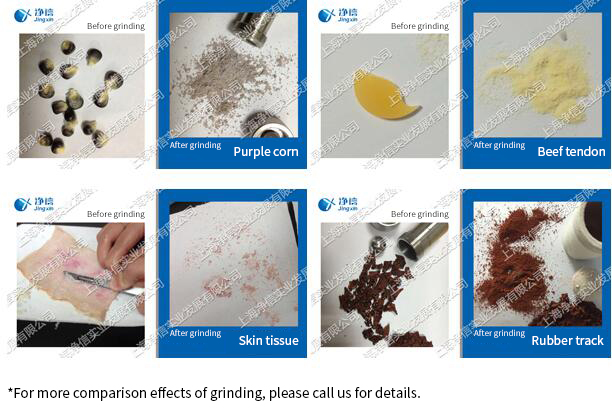 The product is sensitive to heat sensitive substances, Chinese and Western medicine, animals and plants, rubber, plastic, (root, stem, leaf, flower, fruit, seed, brain, heart, lung, stomach, liver, thymus, kidney, intestine, lymph node, muscle , bones, fungi, bacteria, food, medicines, coal, oil shale, wax products, PE, PS, textiles, resins), etc. and materials that are tough at room temperature and cannot be crushed.
