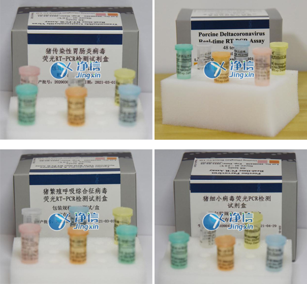 為了解決大型豬場對排查不明原因豬腹瀉的需要,本公司在分析了上述病毒大量國內(nèi)外基因序列的基礎(chǔ)上,原創(chuàng)性地設(shè)計(jì)了獨(dú)特的引物和探針,開發(fā)了“豬傳染性胃腸炎病毒、豬流行性腹瀉病毒、輪狀病毒A型三重?zé)晒釸T-PCR檢測試劑盒和“輪狀病毒C型豬德爾塔冠狀病毒雙重?zé)晒釸T-PCR檢測試劑盒兩款試劑盒。