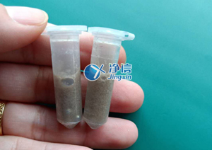 干磨:剪適量頭發(fā)放入2ML離心管中,加入研磨珠若干顆,將裝有樣本的離心管放入研磨孔中,分布均勻擺放,若樣本數(shù)量低于8個(gè),需用空管配比均勻,間隔相同數(shù)量研磨孔擺放樣品管和空管,以保證研磨過(guò)程中受力均勻,管子不被打破,離心管擺放后,蓋上機(jī)器蓋子,設(shè)置研磨參數(shù),將檔速調(diào)制4檔,研磨時(shí)間設(shè)置為5分鐘,按開始鍵進(jìn)行研磨,干磨效果較好,基本一次就可以研磨成功